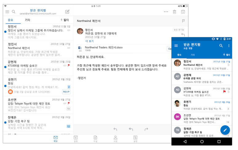 중요 받은 편지함을 활용하면 사용자는 중요한 내용이 담긴 이메일에만 집중할 수 있습니다. 중요 받은 편지함은 받은 편지함을 중요, 기타 등 두 개의 탭으로 구분하는 기능입니다. 업무 관련 내용이 담겼거나 업무상 누군가와 자주 주고받은 이메일은 중요 탭에 저장되고, 나머지 이메일은 기타 탭에 저장됩니다. 둘을 언제든지 손쉽게 확인할 수 있도록 아웃룩 2016이 깔끔하게 정리해줍니다.
