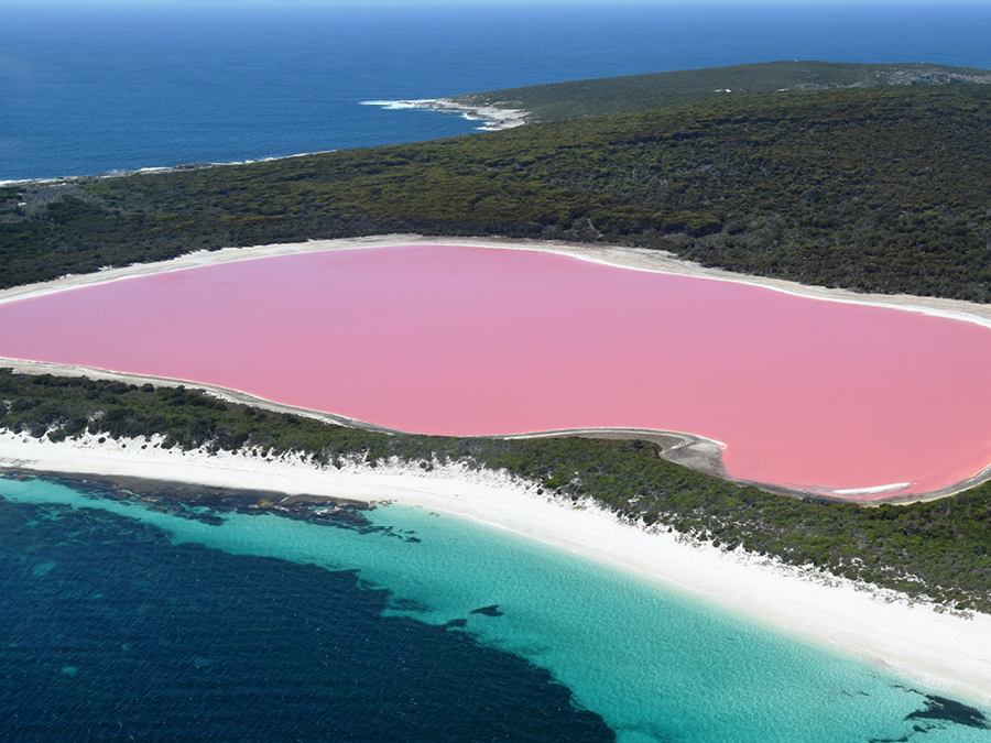 1802년 호주 웨스턴 오스트레일리아주 미들섬에는 딸기 우유를 담아 놓은 듯한 선명한 핑크빛의 힐리어 호수가 발견됐다. 환상 속에서만 존재할 것 같은 영롱한 빛깔의 이 호수는 녹조류의 일종인 ‘두날리엘라 살리라’라는 식물 플랑크톤이 자외선으로부터 몸을 보호하기 위해 ‘베타카로틴’이라는 붉은 색소를 활성화시켜 탄생했다. 염도가 높은 힐리어 호수에는 염도에 강한 ‘두날리엘라 살리라’ 플랑크톤만이 적응할 수 있었고 그 결과 유독 진한 핑크빛을 띠는 호수가 된 것. 때문에 더워질수록 염분 농도가 올라가 색이 더욱 짙어지고 추워질수록 염분 농도가 낮아져 색이 옅어진다고 한다.