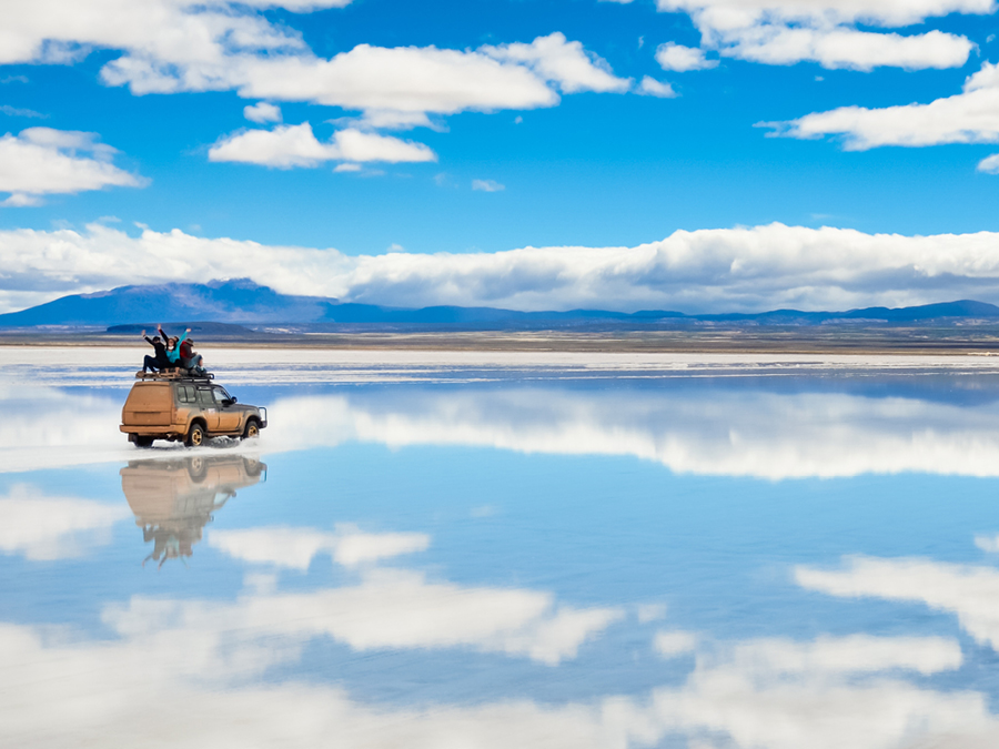 지구에서 가장 큰 거울이라고 불리는 볼리비아 우유니 사막은 해발고도 3,653미터의 높이에 12,000제곱 킬로미터의 면적으로 펼쳐진 세계 최대의 소금사막이다. 지각변동으로 솟아 오른 바다가 빙하기를 거쳐 녹기 시작하면서 거대한 호수가 생겨났다. 세월이 흐르는 동안 볼리비아의 건조한 기후 때문에 물이 증발했고, 그 자리에 소금 결정만이 남아 지금의 우유니 사막이 된 것. 우기가 되면 물이 고여 얕은 호수로 변하는데 이때 사막 위에 푸른 하늘과 흰 구름이 거울처럼 반사된다. 마치 땅과 하늘의 경계가 사라지는 듯한 비현실적인 경관이 연출된다.
