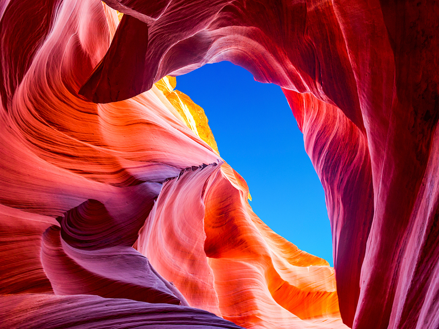 수많은 협곡 중 가장 아름다운 협곡이 있다면 미국 유타주와 애리조나주 경계의 인디언 보호구역 안에 있는 앤텔로프 캐니언이 아닐까 싶다. 이 협곡은 상류 협곡과 하류 협곡으로 나뉘는데 상류 협곡은 여럿이 서 있을 정도로 넓지만 하류 협곡은 출입구부터 힘들게 들어갈 정도로 비좁다. 높은 천장 틈새에서 협곡 바닥으로 떨어지는 강렬한 빛줄기 때문에 마치 조명을 비춘 듯 시시각각 협곡의 색과 질감이 달라 보인다. 이곳은 1년 내내 건조한 기후지만 때때로 많은 비가 내려 급류에 휩쓸릴 위험이 있기 때문에 개인 출입을 엄격히 통제하고 있으며 나바호족 인디언이 직접 관리, 감독하여 나바호족 투어가이드를 이용해야만 관광이 가능하다.