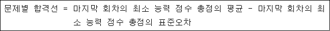 ② 채점항목별 최소 능력 점수표 작성이 종료된 경우 해당 문제의 합격선은 아래와 같이 계산하여 결정한다.