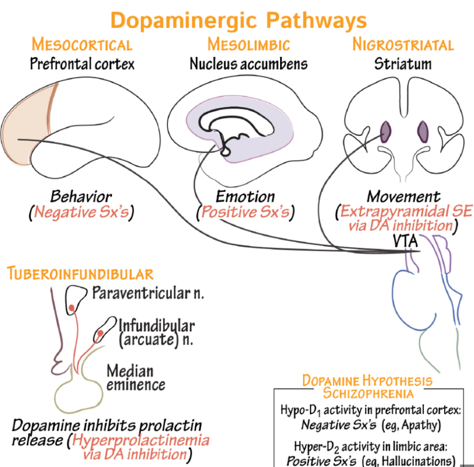 - mesocortical DA pathyway